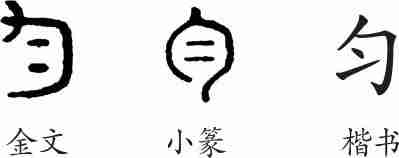“匀”是会意字。金文像臂弯里有二物之形。小篆变为从勹(表周匝),从二,会平均二分之意。隶变后楷书写作“匀”。