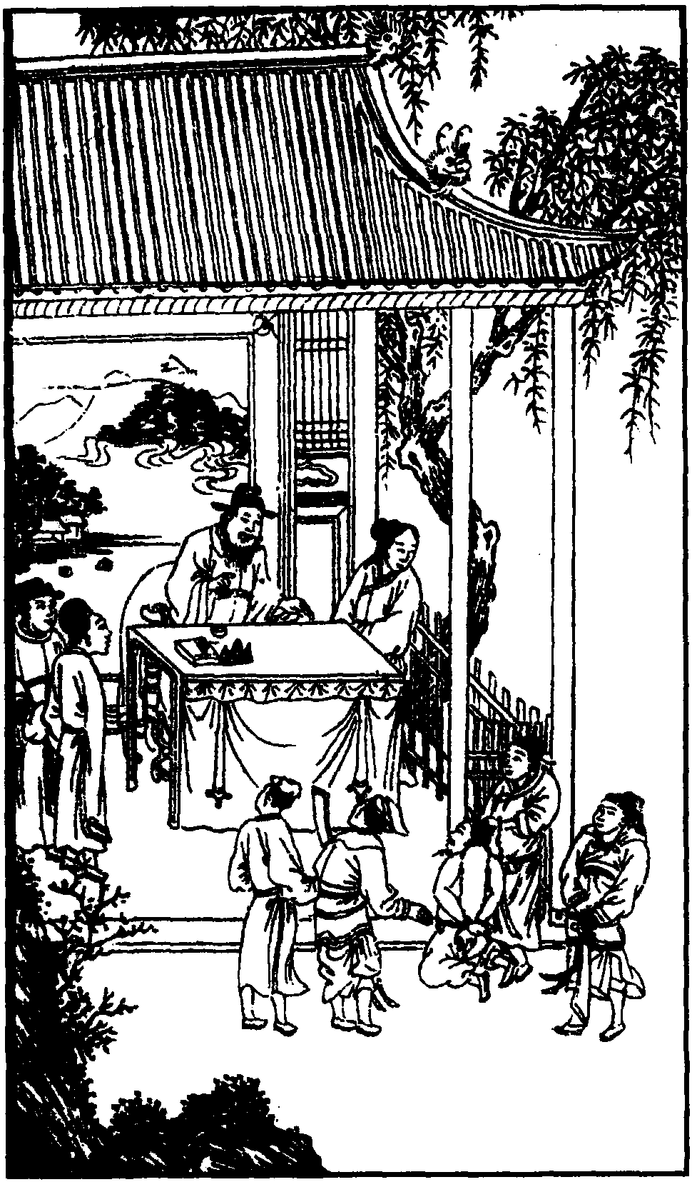 权豪势要鲁斋郎看上了郑州六案都孔目张珪之妻李氏,勒令张珪把妻子送给他。第二天一大早张珪就瞒着妻子,五更前就将她送到了鲁斋郎的家中,上演了一出 “妻嫁人、夫做媒”、夫将妻子送给人的人间丑剧【感皇恩】 这支曲子,就是在真相大白、张珪把李氏送给鲁斋郎时唱的。
