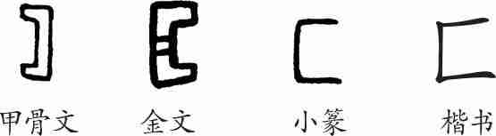 “匚”是象形字。甲骨文像一个可盛放东西的方形器具。金文大致相同,只是其口向右开。小篆线条化。隶变后楷书写作“匚”。