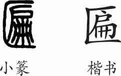 “匾”是后起字,为会意兼形声字。楷书写作“匾”,从匚从扁会意,扁兼表声。
