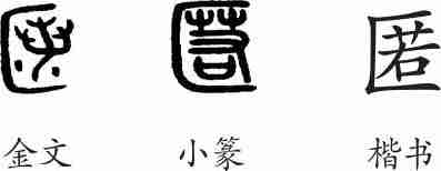 “匿”为会意兼形声字。金文从匚(表示隐藏),从若(散发之人),会隐藏之意,若兼表声。小篆整齐化。隶变后楷书写作“匿”。