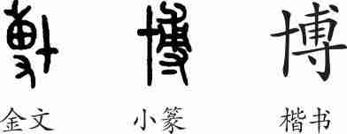 “博”是会意兼形声字。金文和小篆皆从十,从尃(分布)会意,尃兼表声。隶变后楷书写作“博”。