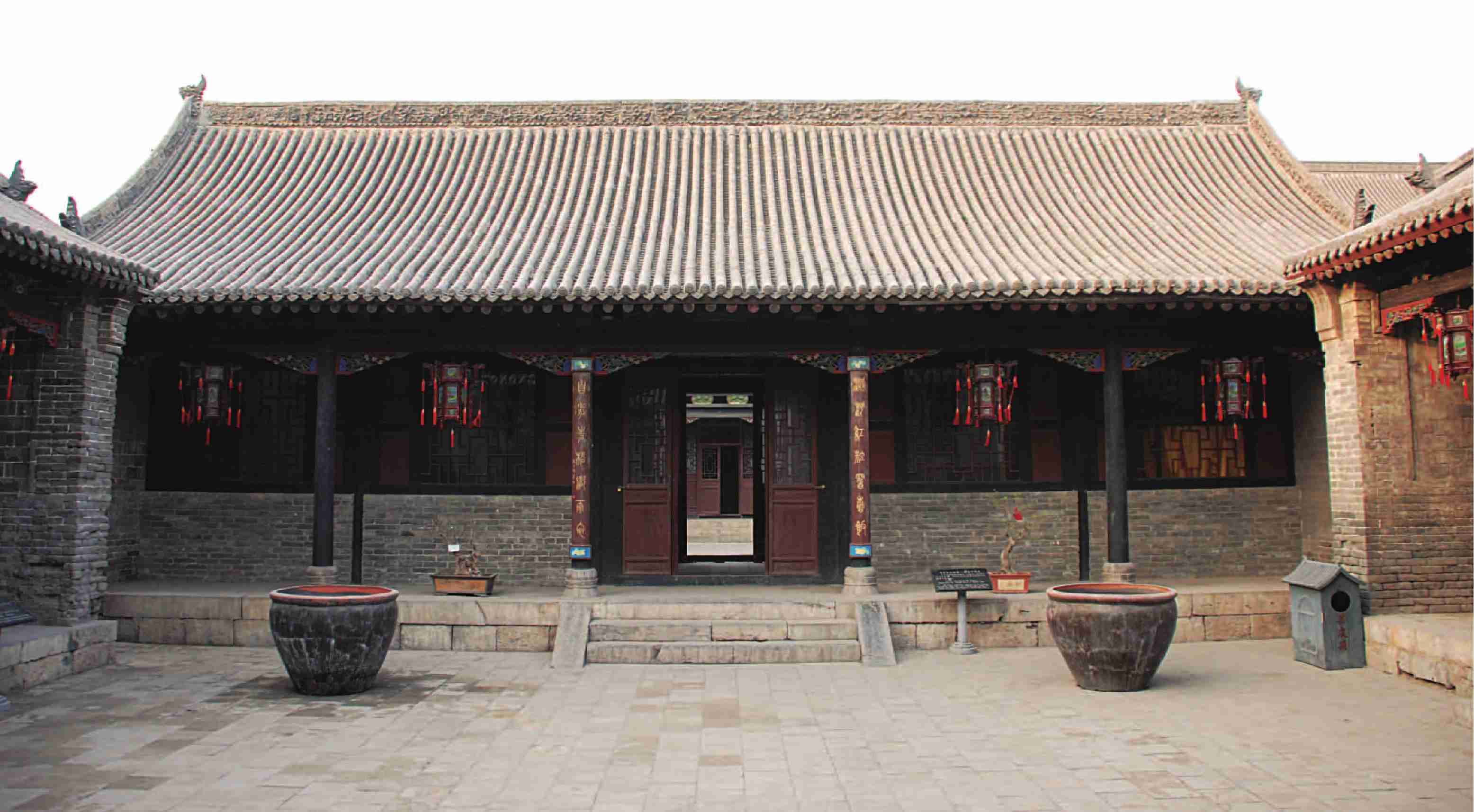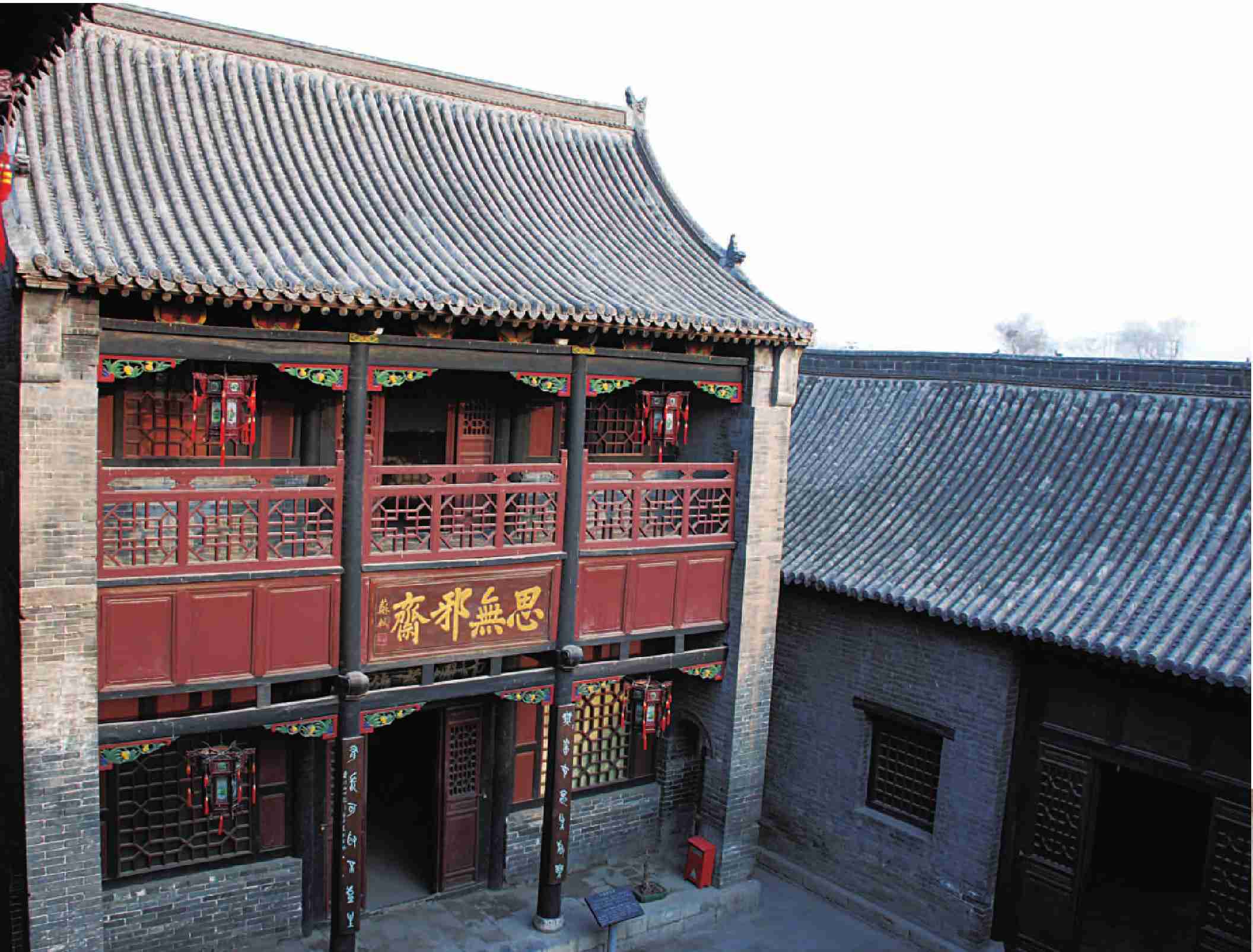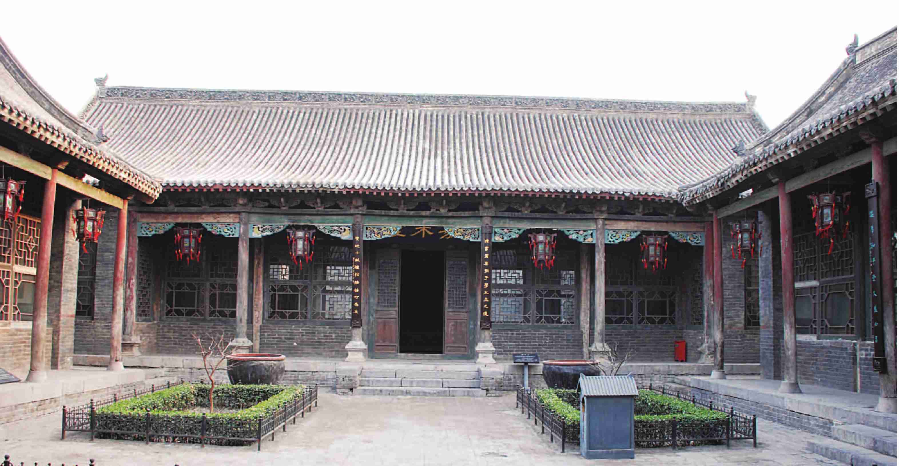 北区是两进四合院,在中区西北300m处,院落坐北朝南,南轴线上由南向北分别为大门、过厅、寝楼,两个院落厢房呈中轴对称。房墙体有方孔,应是战乱年代用于防御的射击口。从金檩上的题记看,该区建筑应是民国年间所建。