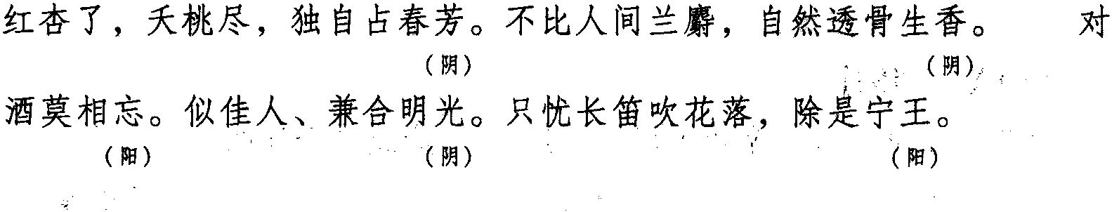 本格双片四十六字。全词同韵,平韵,韵字可阴平、可阳平。因苏轼词有“独自占春芳” 句,故名。