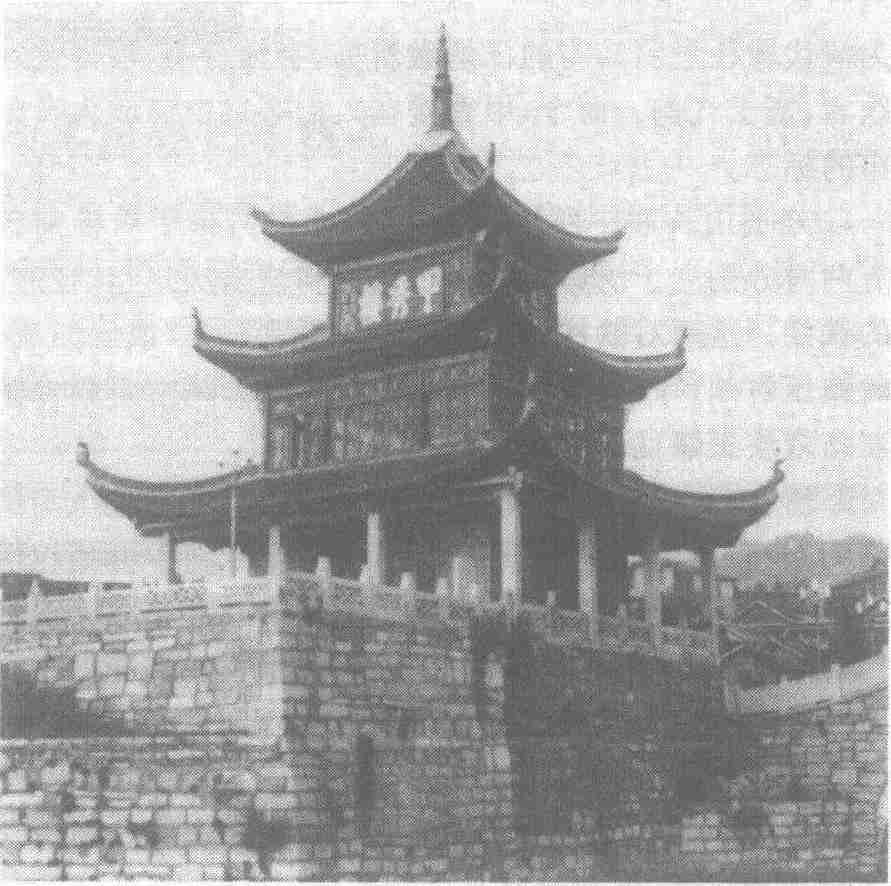 甲秀楼在贵阳城南南明河鳌矶石上,由贵州巡抚江东之始建于明万历二十五年(1597)。当年兴建时,先在河中垒台作“奋鳌状”,名“鳌头矶”,再于台上建阁,名“甲秀”,取科甲挺秀之意。楼曾几毁几建,1981年维修一新。