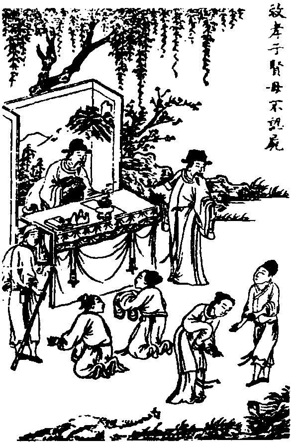 【鉴赏】 在欣赏这支曲子之前,先简单介绍一下作者和剧情。王仲文是生活在金元间的作家,当时政治黑暗,官吏昏庸,冤假错案屡屡发生,《救孝子》 就是反映这种残酷现实的作品。该剧的故事梗概大致如下: 李氏有二子兴祖、谢祖,恰逢招兵,李氏力争让亲生子兴祖从军,让妾生子谢祖读书,以免遭刀兵之险。兴祖去后,其岳母来接女儿王春香回娘家,李氏命谢祖送嫂。至半路,叔嫂分手。赛卢医拐去春香,并将春香衣服穿在被杀害的梅香尸身上。王婆寻女儿不见,疑被谢祖害死,因而告官。官府因尸身腐烂,即据尸身衣服认定王婆所告是实。李氏深知谢祖不会作出此事,坚决不认此尸即儿媳春香,要求验尸,此案遂不得了结。春香被拐后,任凭赛卢医使尽手段,坚贞不从。赛卢医逼她做苦工,打水浇畦,恰遇兴祖立功归家探母,夫妻相见,说明经过。兴祖拿住赛卢医,同去开封府。冤情大白,官府缉办凶手,表彰李氏一家。