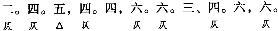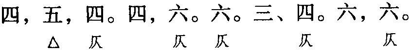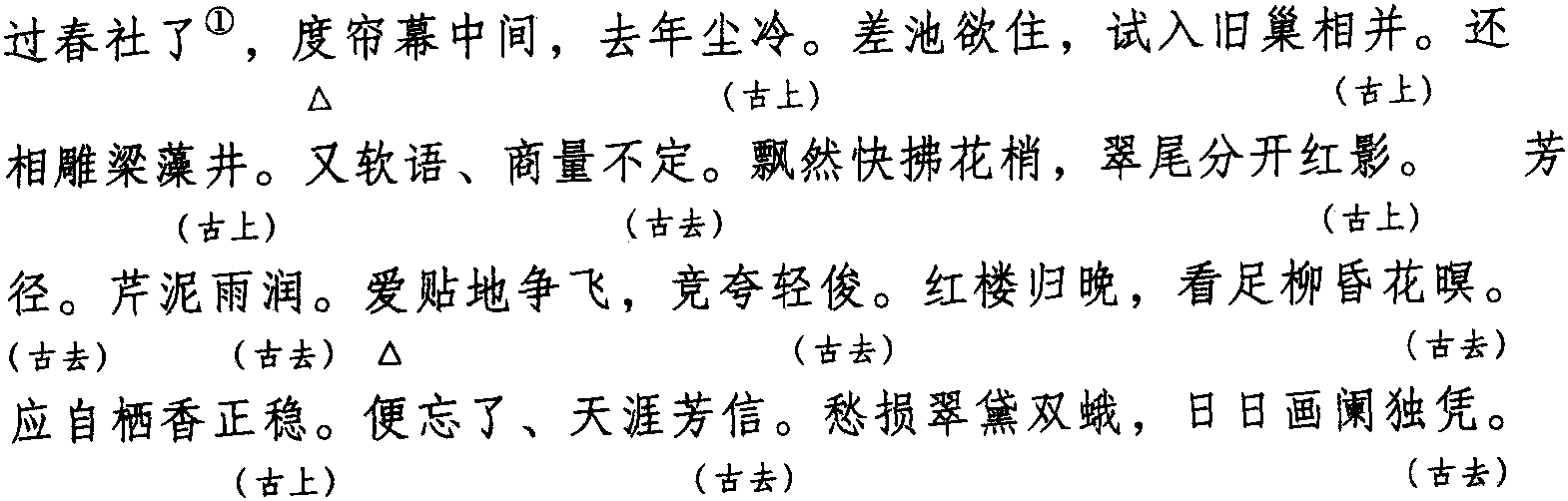 >注: 一、本词例押古上声“阮” “梗” 韵,古去声“震” “径” 韵。因 “梗”“径”在现代韵中属 “声”韵,“震” 与 “声” 属宽韵,“阮” 与“捆” 在古韵中同韵,而“捆” 与“声” 亦属宽韵,故全调可押东部“声” 韵。