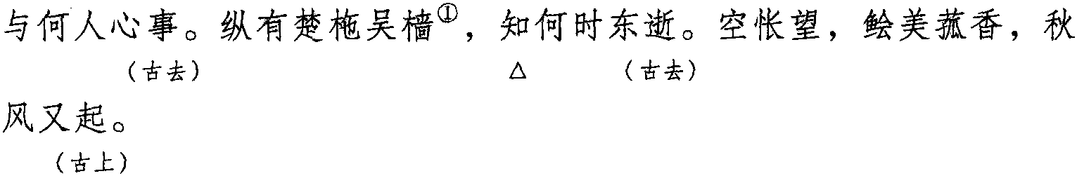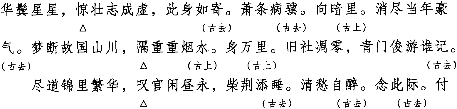注: 一、本词例押古上声“纸”韵,古去声“寘” “未” “霁”韵。因“纸”“寘” “霁” “未” 在现代韵中同“衣”韵,故全调可押衣部“衣” 韵。