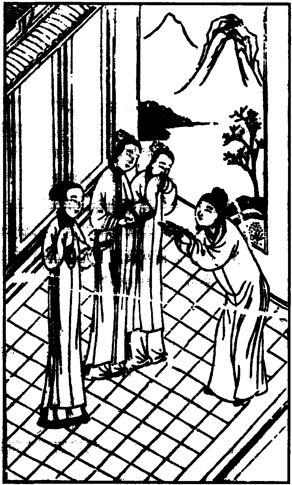 【折桂令】(夫)俺家门清白相传,敢做非为玷辱吾先。是前生冤孽牵缠,致今朝获谴于天。果将吾屈丧其元,肯甘心瞑目黄泉。