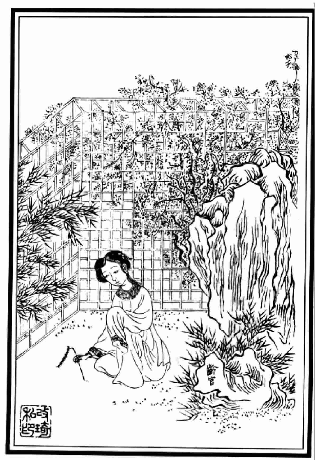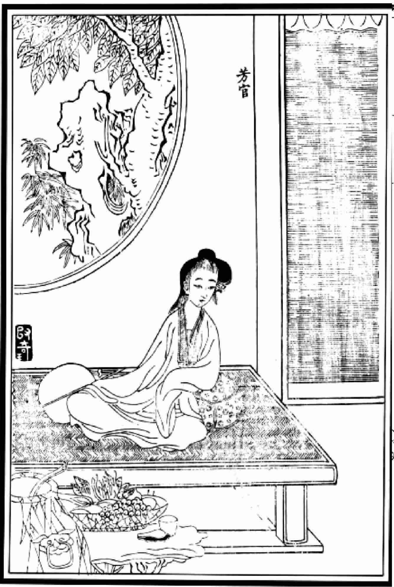 芳官被打以后的模样,更是楚楚动人:“那芳官只穿着海棠红的小棉袄,底下丝绸撒花袷裤,敞着裤腿,一头乌油似的头发披在脑后,哭的泪人一般。”正如麝月所打趣的:“把一个莺莺小姐,反弄成拷打红娘了!”宝玉却喜欢她这“本来面目”,不让她弄紧衬了,以后又是让她用口吹汤,又是要她亲口尝汤。她干娘自讨没趣,竟然要上去代替芳官吹汤,被燥了一鼻子灰走了。这里宝玉又使眼色与芳官,“芳官本自伶俐,又学了几年戏,何事不知?便装说头疼不吃饭”,独自留下陪宝玉。宝玉便乘机把藕官在园里烧纸私祭的事问她,芳官一五一十都说了,这就是第五十八回下半回“茜纱窗真情揆痴理”的内容。