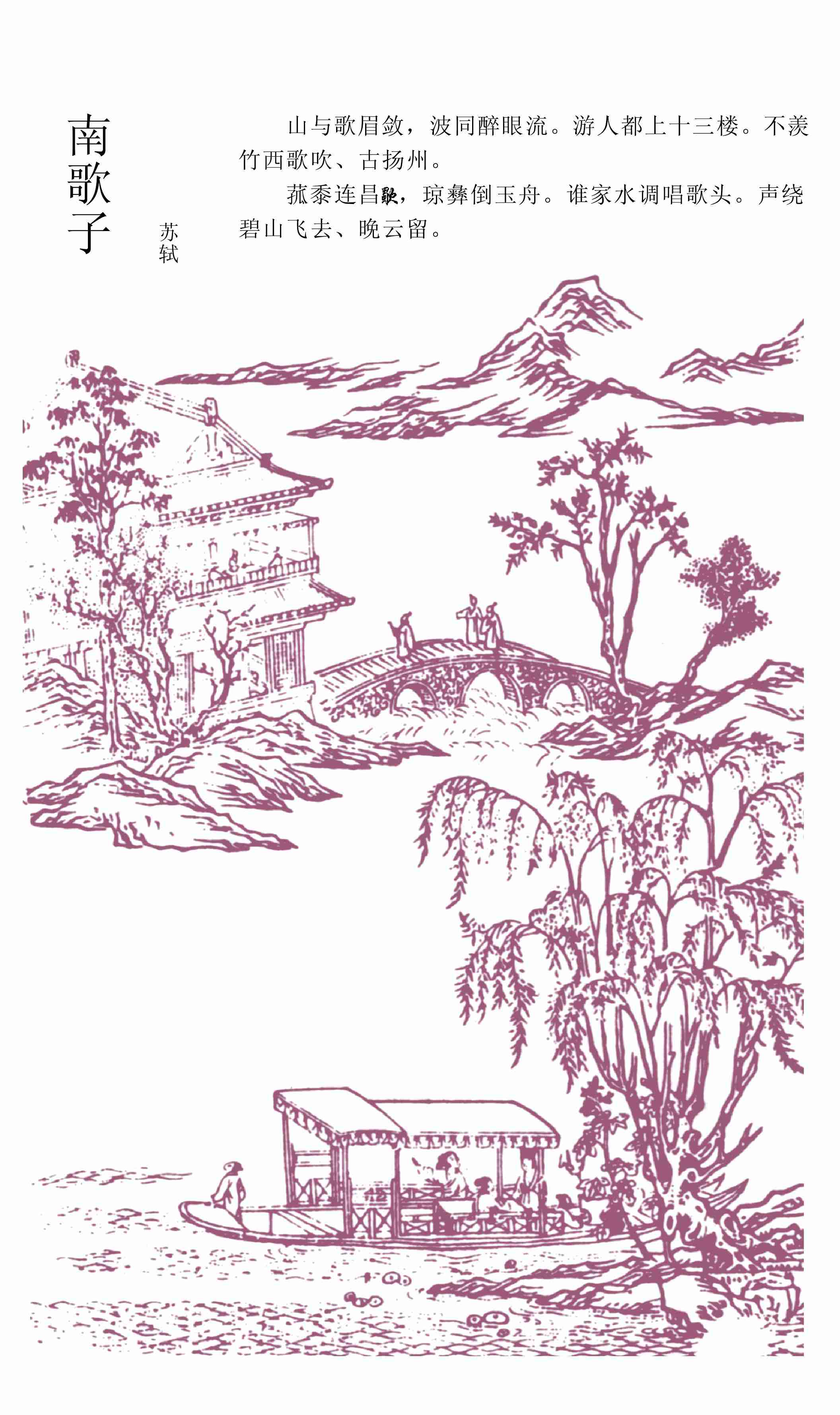 山与歌眉敛,波同醉眼流。游人都上十三楼②。不羡竹西歌吹、古扬州③。