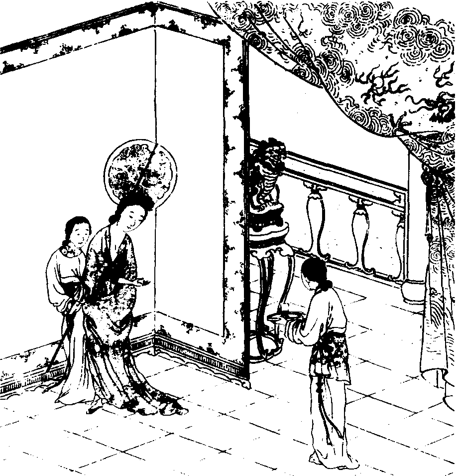这首词精彩地描绘出一幅君妃夏夜纳凉的图画,不仅使我们神游于那个月明星稀、水风送爽、花香袭人、更漏滴幽的迷人仙境,而且使我们看到花蕊夫人冰清玉洁的花容月貌和钗横鬓乱的旖旎风姿,以及一位风流皇帝携着宠妃洁白纤细的“素手”遥望星空、玩赏月色于龙楼凤阁、曲苑回廊间的惬意情景。