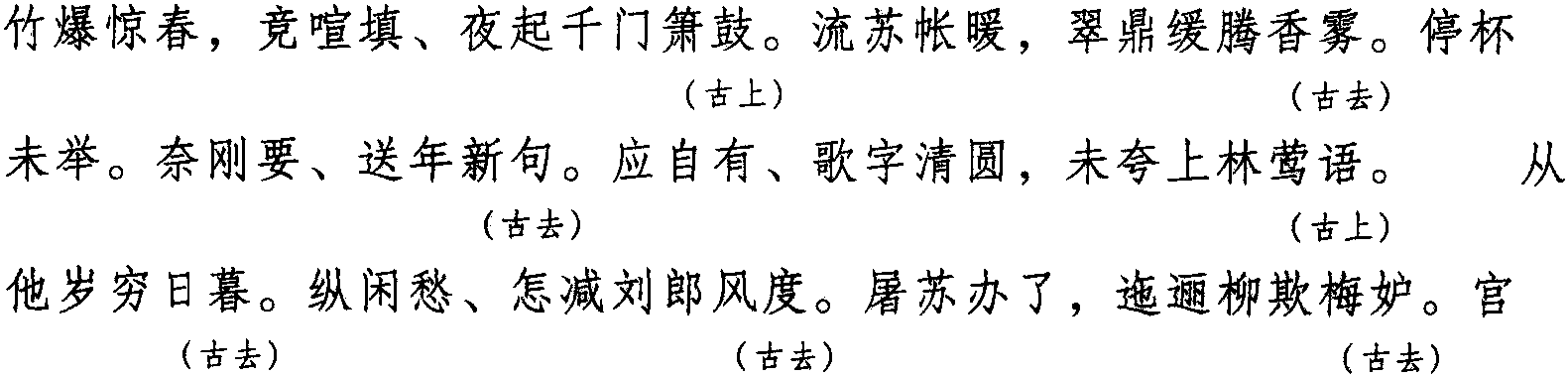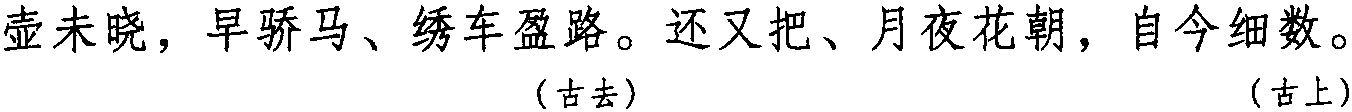 注:本词例押古上声“语” “麌”韵,古去声“遇”韵。因“语” “麌” “遇”在现代韵中属“居”韵,故全调可押衣部 “居”韵。