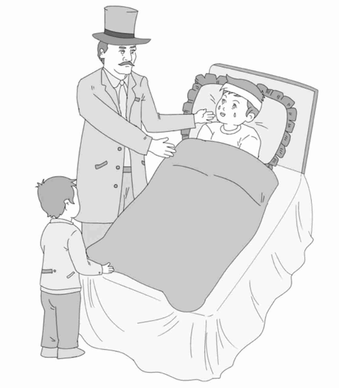 第二天,这位绅士正在自己的办公室工作,听见下属说有一个男孩儿要见他。于是男孩儿被叫了进来,这个男孩儿比卖火柴的男孩儿矮了一些,穿得更破烂。