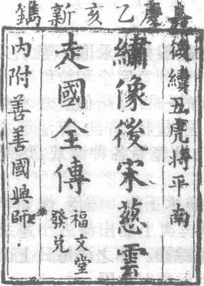 清嘉庆二十年(1815)福文堂刊本《后宋慈云走国全传》扉页书影