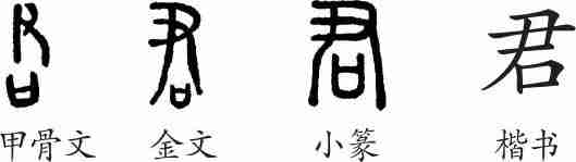 《说文·口部》:“君,尊也。从尹,发号,故从口。”(君,尊贵。从尹,表示治理的意思;发号司令,所以从口。)