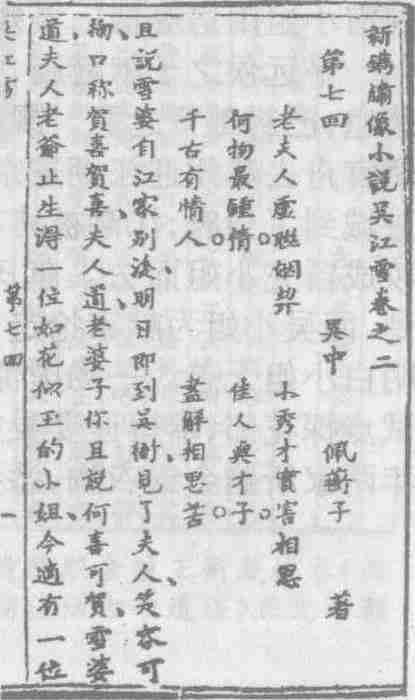 清代白话长篇才子佳人小说。四卷二十四回。题“吴中佩蘅子著”。或谓作者为顾石城,苏州人。成书于清康熙四年(1665)。