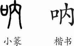 “呐”是后起字,为会意兼形声字。楷书写作“呐”,从口,从内,内兼表声。