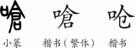 “呛”是形声字。小篆从口,倉声。隶变后楷书写作“嗆”。汉字简化后写作“呛”。