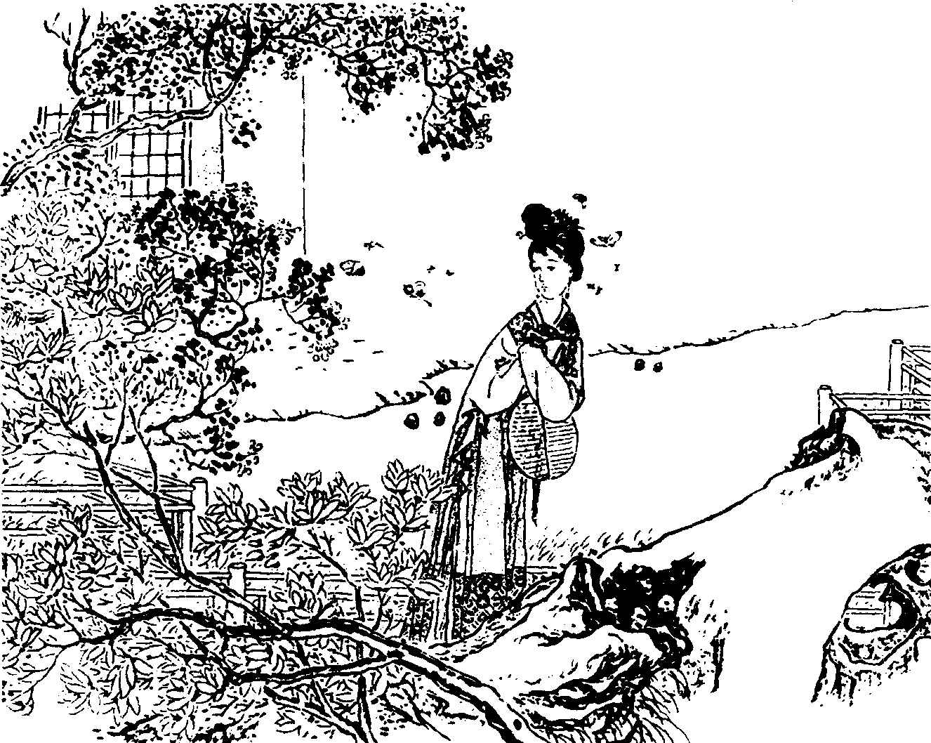 烟柳疏疏人悄悄,画楼风外吹笙。倚阑闻唤小红声,熏香临欲睡,玉漏已三更。坐待不来来又去,一方明月中庭,粉墙东畔小桥横。起来花影下,扇子扑飞萤。