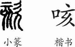 “咳”是形声字。小篆从口,亥声。本是“孩”的异体字,后借用为“欬”(从欠,亥声),表示咳嗽。隶变后楷书写作“咳”。