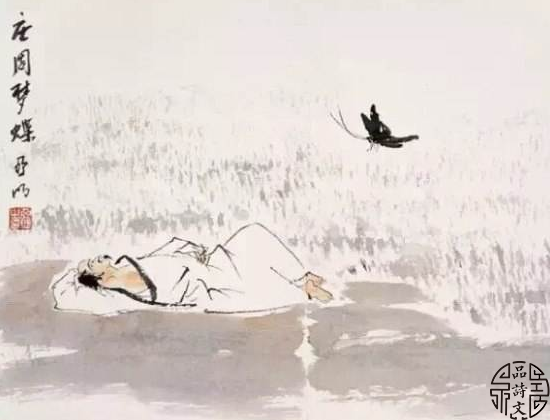 最后,庄子讲述了一个极富浪漫色彩的寓言,梦见自己变成了一只自由飞舞的蝴蝶。沉醉于美妙梦境回味中的庄子分不清是自己做梦变成了蝴蝶,还是蝴蝶做梦化为自己。庄子评论说,自己和蝴蝶当然是有分别的,物和我当然是有界限的,但这个界限却是可以消融的,那就是主观精神和客观世界的交融与泯合,就是人生的最高境界——“物化”。