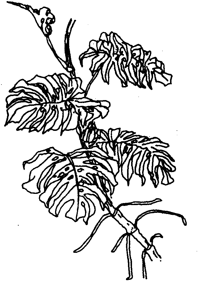 龟背竹原产墨西哥热带雨林中,我国福建、广东、云南栽培于露地,其余地区多盆栽于温室。龟背竹喜温暖、潮湿的环境,忌阳光直射,忌干旱,耐阴,不耐寒,适宜温度22~26℃,冬季不得低于10℃。在北方地区一年能长四五片叶子,一般不易开花,有少数管理好的5年生者也能开花。大型植株要用支架支撑,或依靠室内房柱用绳牵引绑缚,使其正常生长。