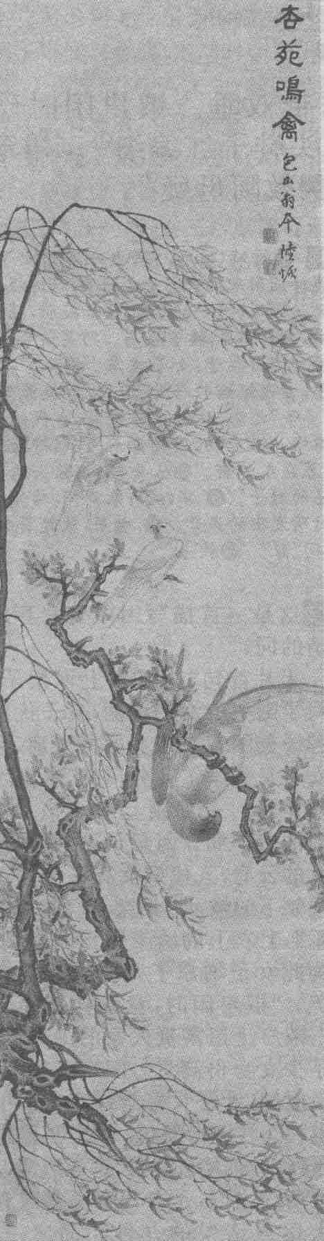 杏苑鸣禽图 陆恢