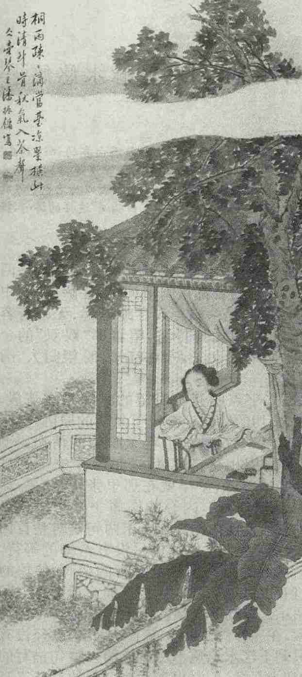 词的下阕被认为是写愁的绝唱,历来被人们赞叹不已。下阕没有继续对女主人公的容貌情态和辗转反侧的情绪进行描写,而是剪取夜雨梧桐树、滴空阶的一个镜头。室外梧桐夜雨声点点滴滴,好像把绵绵不绝的凄寒之意注入心头,而为离情所苦的人彻夜难眠,便这样听滴滴雨声愁思到天明,道出长夜难眠的一种极真切的体验。“梧桐”“雨”“空阶”的意象传承于南朝阴铿的“夜雨滴空阶”及白居易“秋雨梧桐叶落时”(《长恨歌》),却在此基础上有进一步的拓展,错落深婉、淋漓尽致而扣人心弦。“一叶叶,一声声,空阶滴到明”的意象,为此后词家所一再追随模仿。