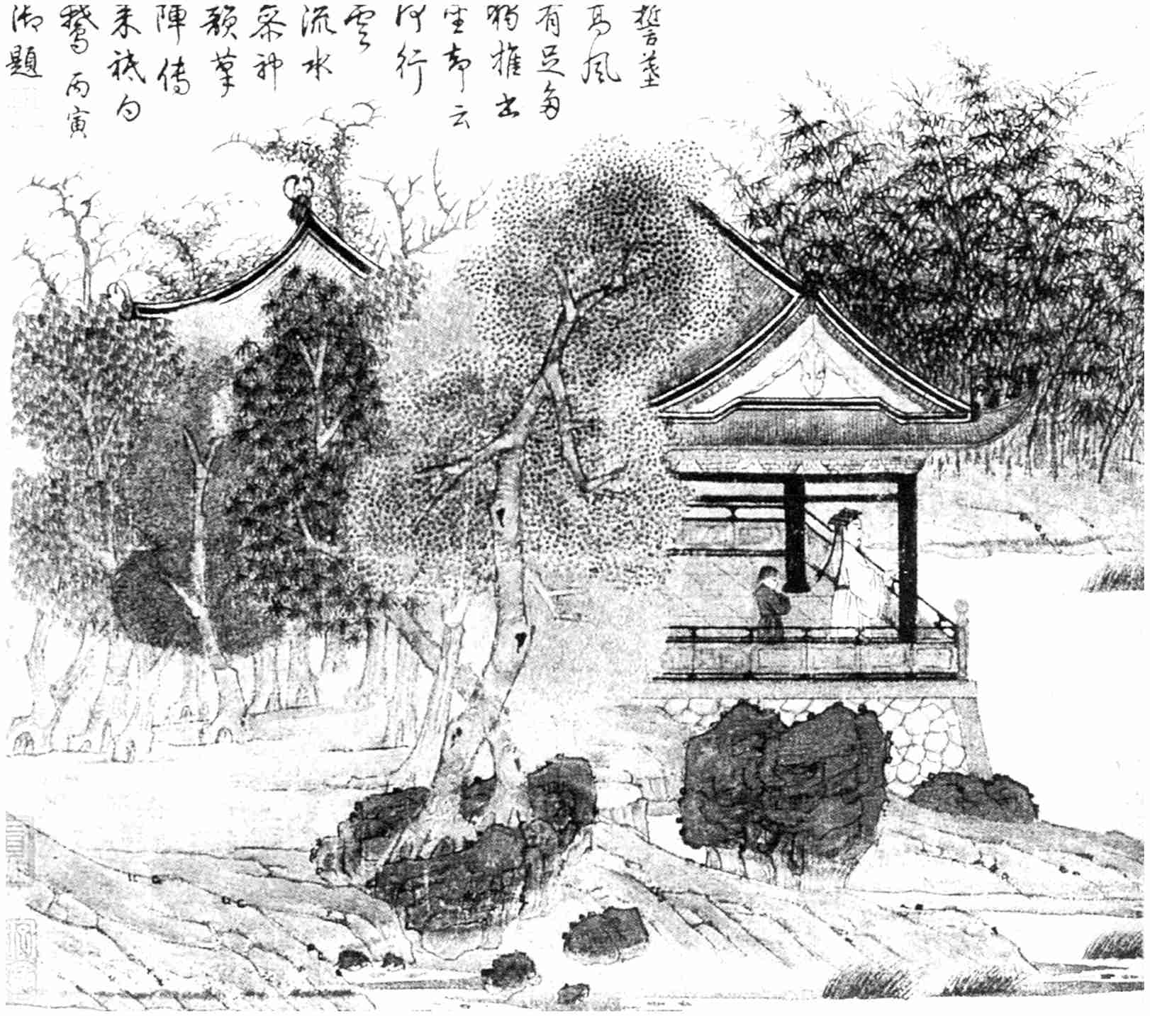 中间八句写站在塔上所见景色,从侧面突出塔高。东面山岭连绵的波涛;玲珑小巧的青槐、宫观;关中苍茫秋色;北原青蒙蒙汉陵。所有这些都是极目远眺尽收眼底之景。东西南北,视野广阔辽远,从所见景物之远来渲染塔高。这几句景物描写也创造了孤高、清雅的境界。
