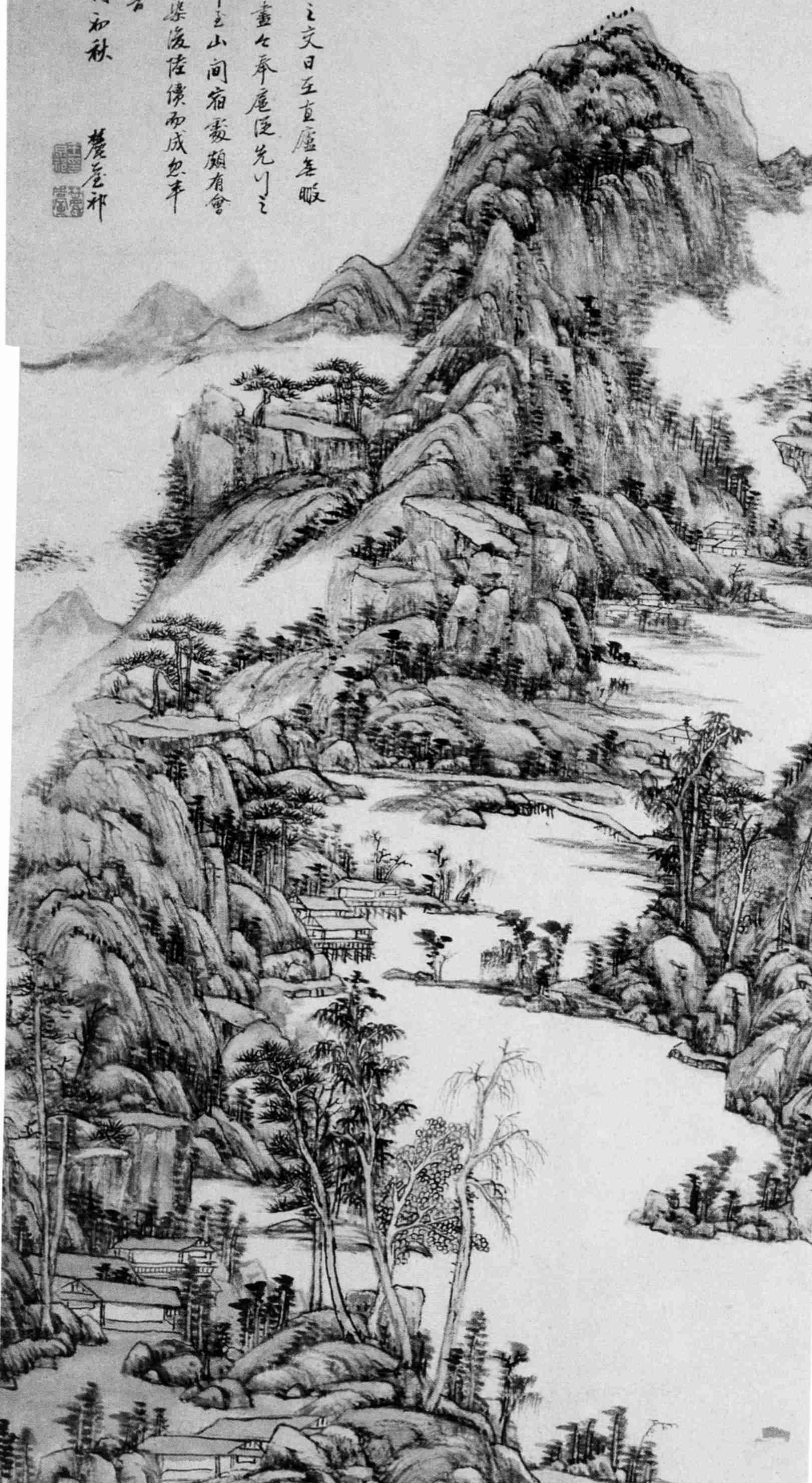 诗前两句仿佛一幅色彩厚重的油画。这是逆黄河向上看得来的。九曲黄河如一条丝带迤逦弯曲飞上云端;天上白云静止,“远”和“上”写出了长度和高度。如此优美凝重的造型,再加上黄白两种亮丽的颜色相谐,构成了这幅油画的背景。接下来诗人又点上“一片孤城万仞山”。“孤城”比于“万仞山”,立显山之高,城之矮。但城却存在于这大川高山之间,地形险要之外。此城定然是戍边堡垒,诗中又暗示:城中有征人存在。至此一幅油画便完成了,但感觉画面中少了点生命的颜色。于是诗人转而写春了。