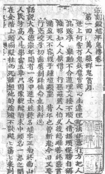 清乾隆五十年(1785)凤城五云楼藏板本《唐钟馗平鬼传》正文书影