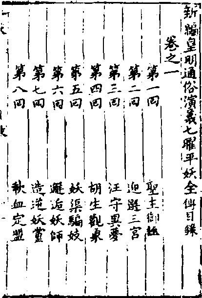明末刻清修本《七曜平妖传》目录书影