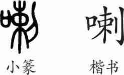 “喇”是后起字,为形声字。楷书写作“喇”,从口,剌声。