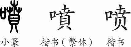 “喷”是形声字。小篆从口,賁声。隶变后楷书写作“噴”。汉字简化后写作“喷”。