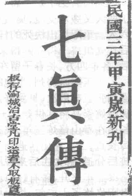 1914年治古堂刊本《七真因果传》扉页书影