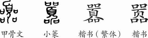 “嚣”是会意字。金文的中间是个“頁”,表示人头,周围有四个“口”,会众口喧嚣之意。隶变后楷书写作“囂”。汉字简化后写作“嚣”。