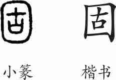 “固”是形声兼会意字。小篆从囗(围绕),从古(长久),会四面闭塞永固之意,古兼表声。隶变后楷书写作“固”。
