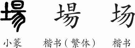 “场”是形声字。小篆从土,昜声。隶变后楷书写作“場”。汉字简化后写作“场”。