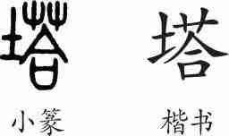 “塔”是形声字。小篆从土,荅声。隶变后写作“塔”。