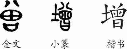 “增”是形声字。小篆从土,曾声。隶变后楷书写作“增”。