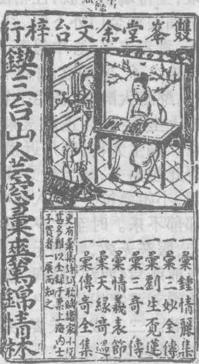 明代中叶以来,与当时社会环境相呼应,汇刻传奇及元明两代所创作的中篇文言才子佳人小说频频问世,蔚为大观。其中仅万历年间,便有《绣谷春容》、《国色天香》、《风流十种》、《燕居笔记》等多种面世。其体例多分两栏,上栏收唐宋以来传奇、话本及诗词曲赋并杂说;下栏收入元明人的中篇文言小说,复有插图嵌于文中,各书所收,大致相同。