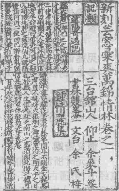 明万历二十六年(1598)双峰堂余文台刊本《万锦情林》扉页书影