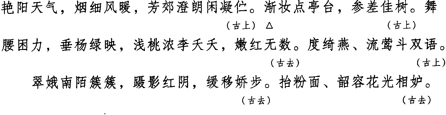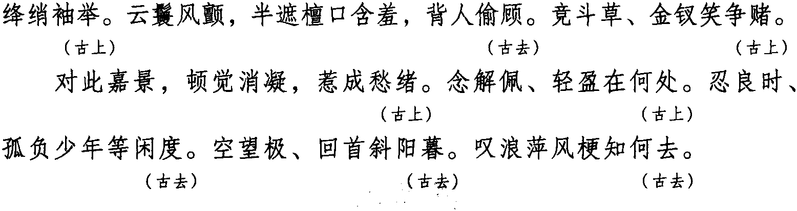 注:本词例押古上声“语” “麌”韵,古去声 “御” “遇”韵。因“语” “麌”“御” “遇” 在现代韵中属 “衣” 韵,故全调可押衣部“衣” 韵。