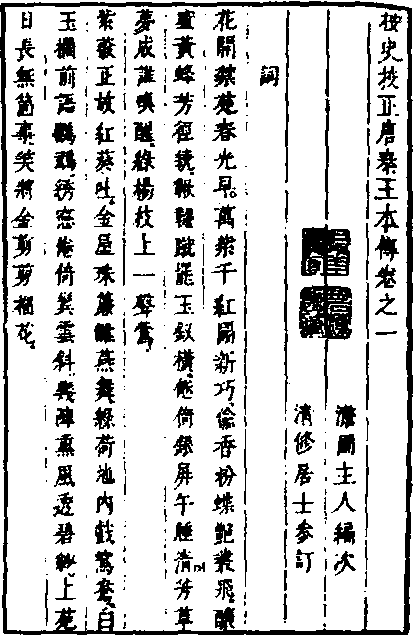 明代白话长篇历史演义小说。一名《唐秦王本传》、《唐秦王词话》、《唐传演义》,又名《大说唐全传》。八卷六十四回。题“澹圃主人编次,清修居士参订”。作者为诸圣邻,号澹圃主人,浙江宁波人,生平不详。成书于明万历年间。