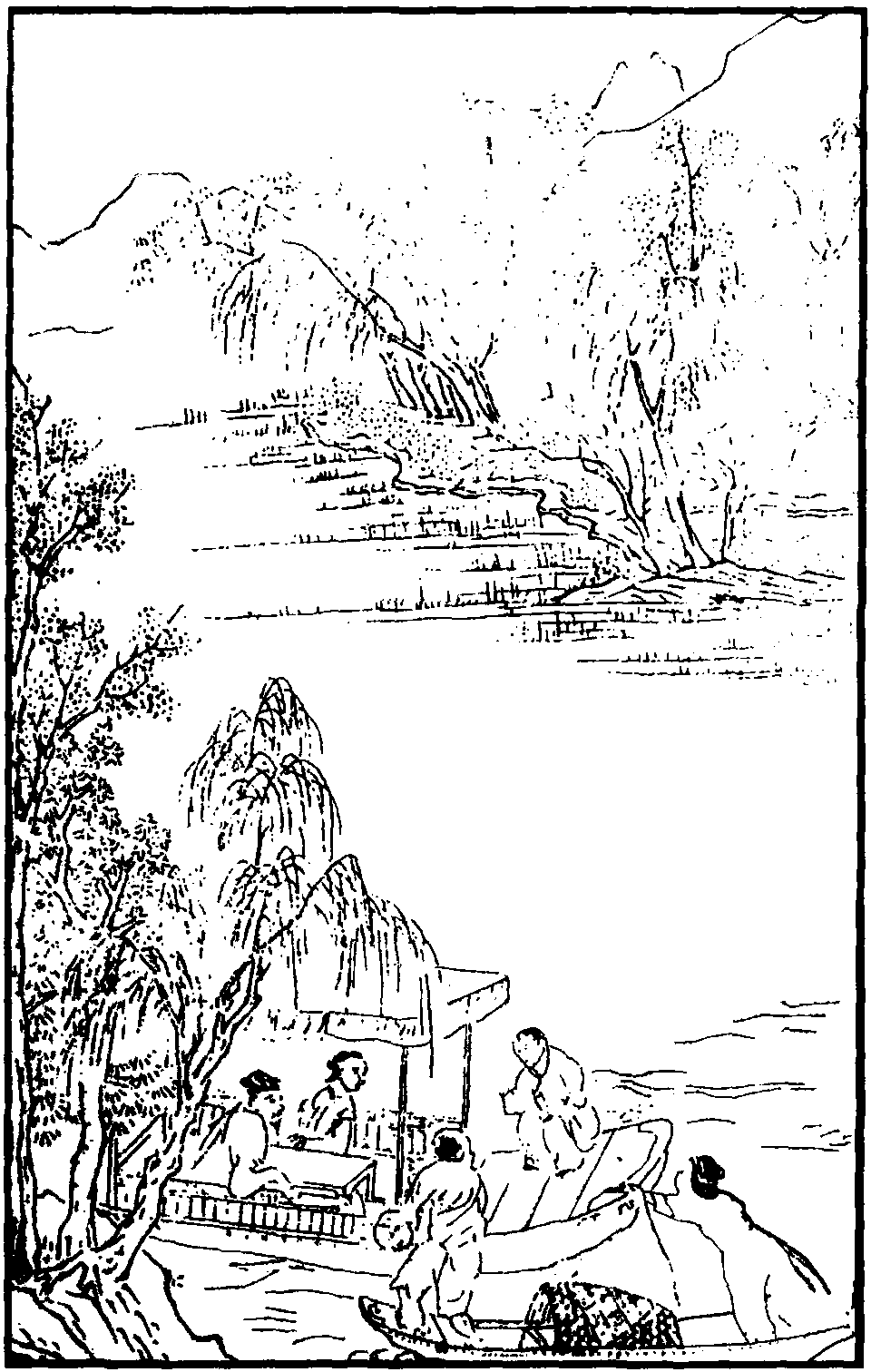 【尾声】 扁舟系缆沙边久,好趁天风到十洲,烟水茫茫何处求?