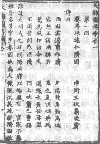 明朝成化年间,扬州府江都县宦家子弟李荣春,为人慷慨仗义,人称小孟尝君,娶妻淡氏,未有子嗣。李荣春县试得中解元,因不忍远离母文氏,不曾进京赴试。一日,李荣春欲往海丰寺会法通长老,在玉珍观前遇山海关总制之女施碧霞欲卖身医兄葬母,其父被奸臣陷害。李欲赠银济危,恰被恶少花子能撞见。花子能父花锦章乃当朝宰相,二叔花锦文官拜九州招讨使,三叔花锦龙居太子太保兼总漕,四叔花锦凤为先王驸马。花子能倚仗父、叔之势,无所不为,更兼是色中恶魔,见了美貌女子,即让家人强抢入室,人称“净街大王”。花子能娶妻秦氏,有三十一妾,其中二十八人俱是抢夺而来。他见碧霞美貌,即命手下人将其抢入府中,欲充做第三十二房小妾。