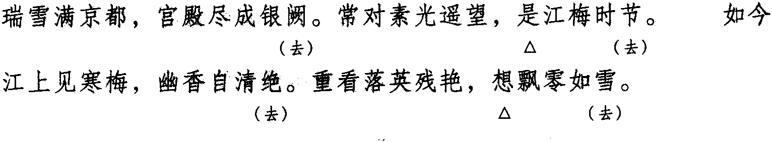 注:本词例押些部“些”韵。本押古入声“月” “屑”韵,因“月” “屑” 在现代韵中属“些”韵,故全调可押 “些” 韵。