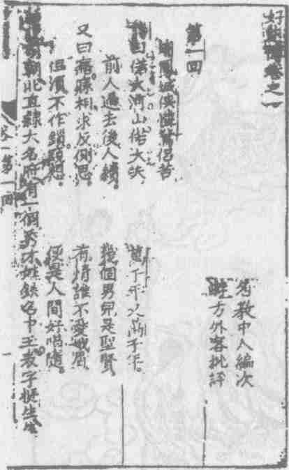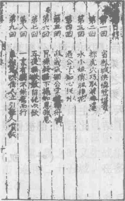 清同治二年(1863)独处轩藏板本《好逑传》目录书影