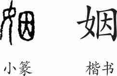 “姻”是会意兼形声字。小篆从女从因(表示凭借、依靠)会意,因兼表声。隶变后楷书写作“姻”。